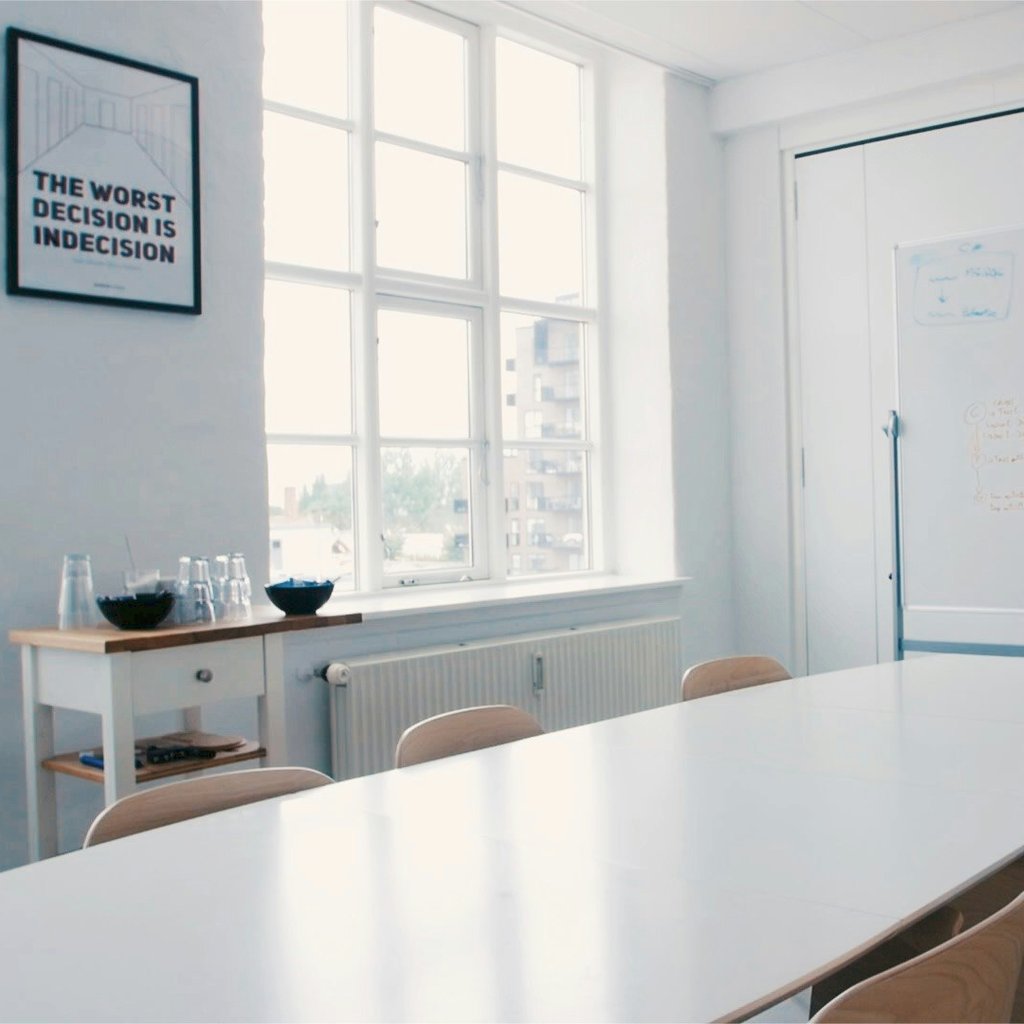 Som beboer i kontorfællesskab får du adgang til nogen super lækre fællesområder. Der er i alt fire mødelokaler der frit kan afbenyttes - så det kommer du aldrig til at mangle. To af dem kan slås sammen og danne et konferencelokale med plads til 20 personer. Desuden er der en suveræn frokostordning med et stort udvalg af sunde retter og et stort dedikeret spiseområde.
