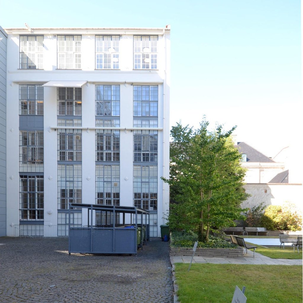 Velkommen i baghuset i Amaliegade 5. Kontoret har gode adgangsforhold via hovedtrappe eller elevator og stor fælles grøn gård mellem forhuse og baghus.
