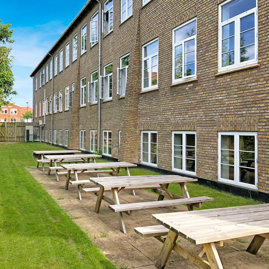 I bygningens nederste etage er der kantine, med udgang til haven. Her kan der spise frokost eller afholdes grillarrangement når vejret er til det ☀️