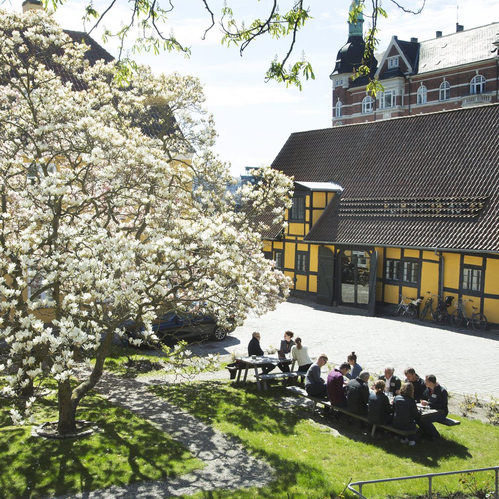 Fæstningens Materialgård blev bygget tilbage i 1740, og er i dag blevet nyrenoveret, så den kan være hjem for spændende startups og virksomheder, der specialiserer sig i byudvikling. Indvendigt er bygningen prydet af smukke fritlagte bjælker og udenfor kan du nyde godt af de store grønne områder.