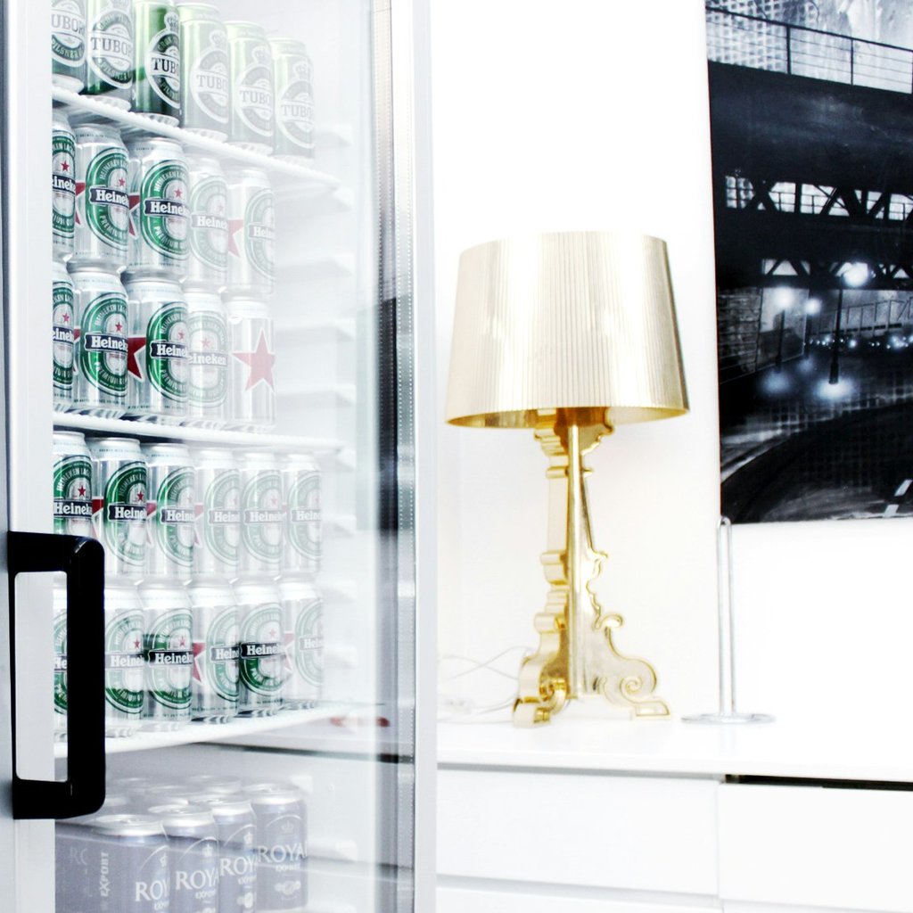 I kontoret er der både bordtennisbord og bordfodboldbord der kan benyttes når der er brug for en break. Og når det er fredag er der tradition for at snuppe en kold øl på tagterrassen når solen er fremme 🍹
