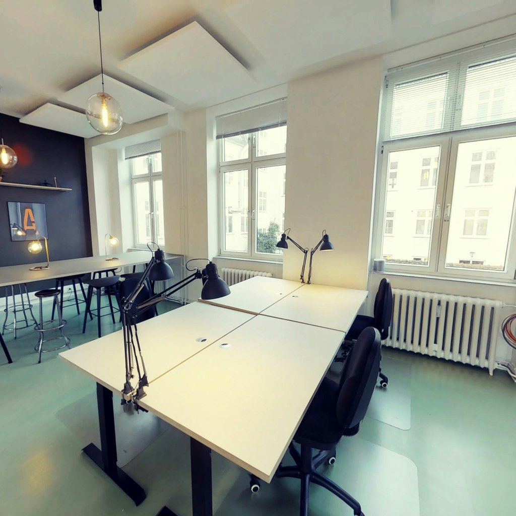 I kontoret kan du leje et bord eller din egen ø, hvis i er et team. Udlejer er fleksibel, når det kommer til hvor i lokalet i vil sidde. Der er mulighed for at opdele lokalet med planter og rumdeler, hvis i er et team, der ønsker at have private samtaler på kontoret.