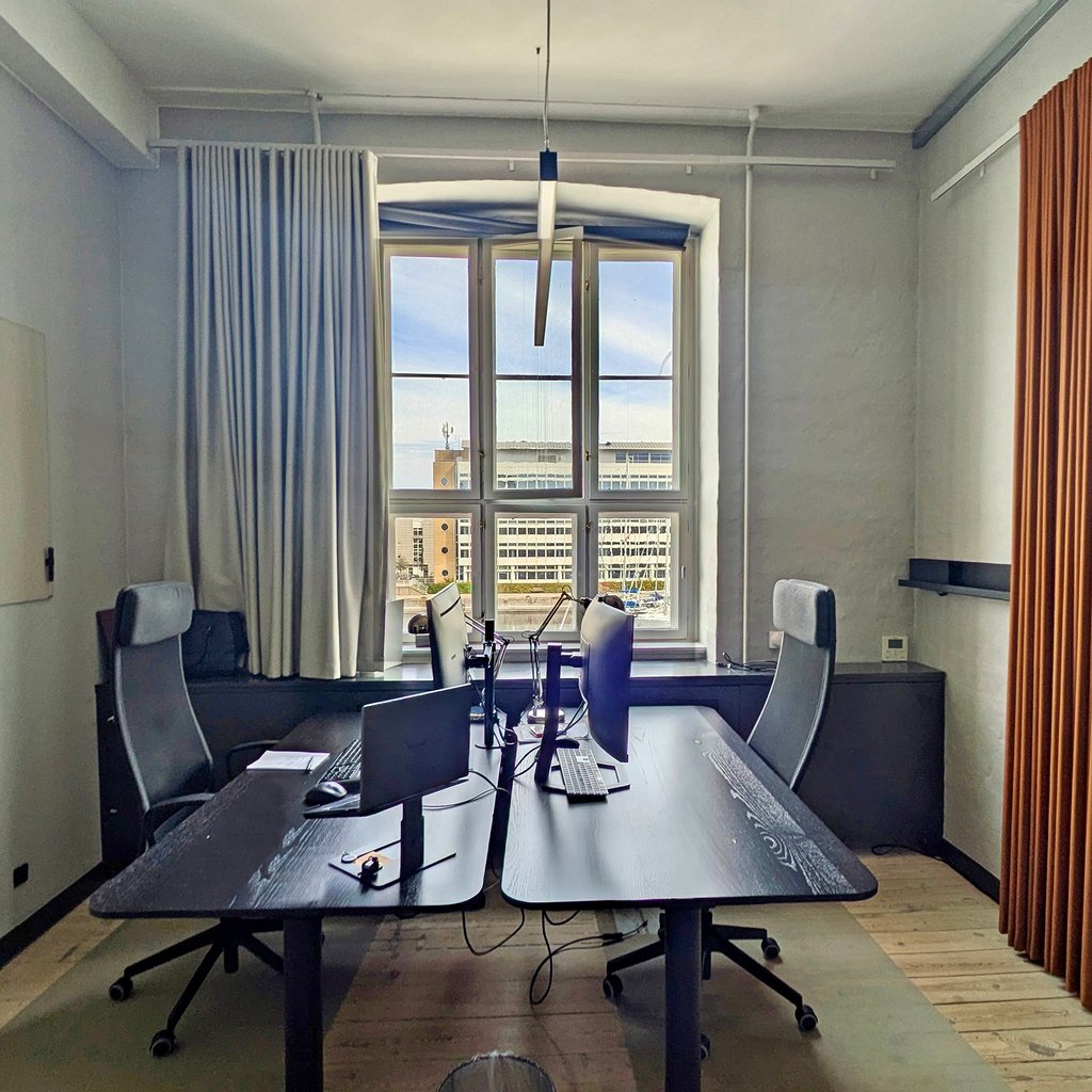 Vi har seks store, lyse kontorer som står klar til indflytning (hver med plads til 2-3 personer)