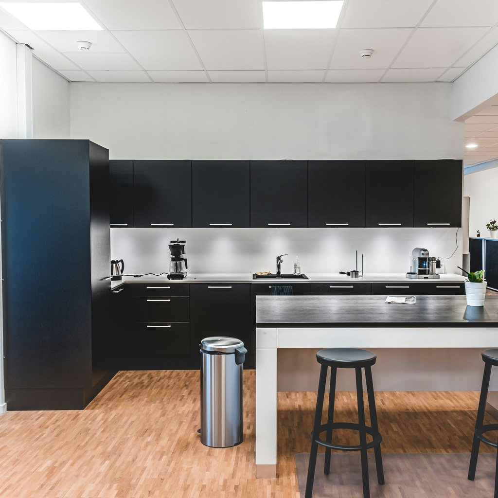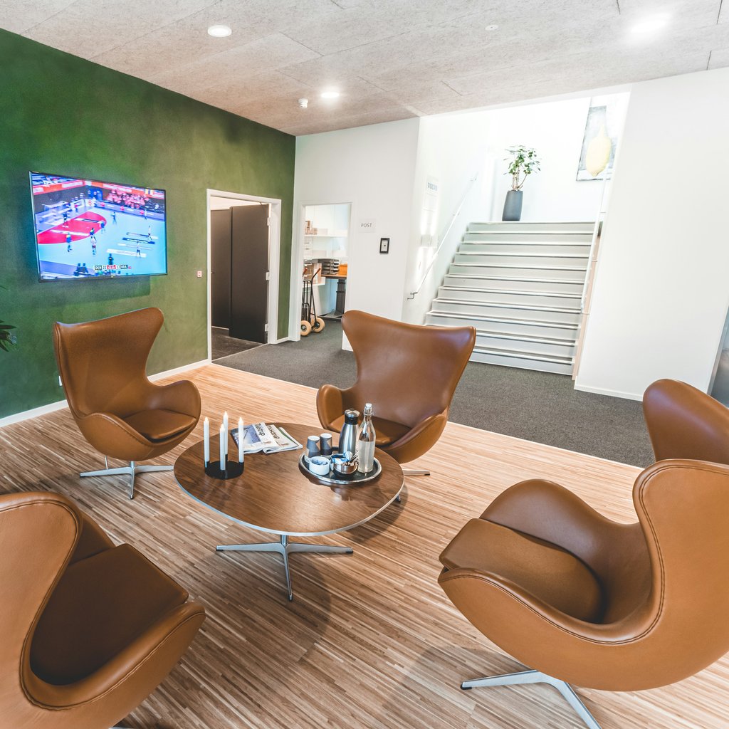 På Dybendalsvænget 3 finder du et af Taastrups fineste kontorhoteller. Hele huset er indrettet med stilrene møbler, super flot og unikt gulv som spiller godt med de dejlig lyse lokaler. Fælles arealerne er hyggelige, og de rustikke mørkegrønne vægge er med til at skabe en varm og hyggelig stemning.