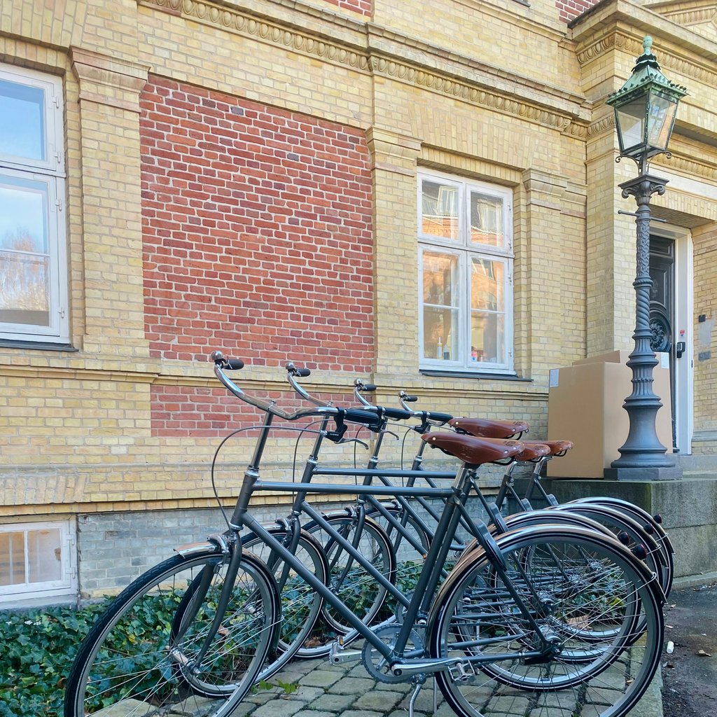 Der står cykler fuldt optanket :-) og klar til du tager turen til mødet, total miljøbevist og med 100% lettere parkerings tid...