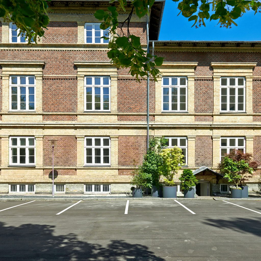 Ferdinand kontorhotel, har naturligvis parkering til bilen, du kan leje en plads og der er 8 med strøm.