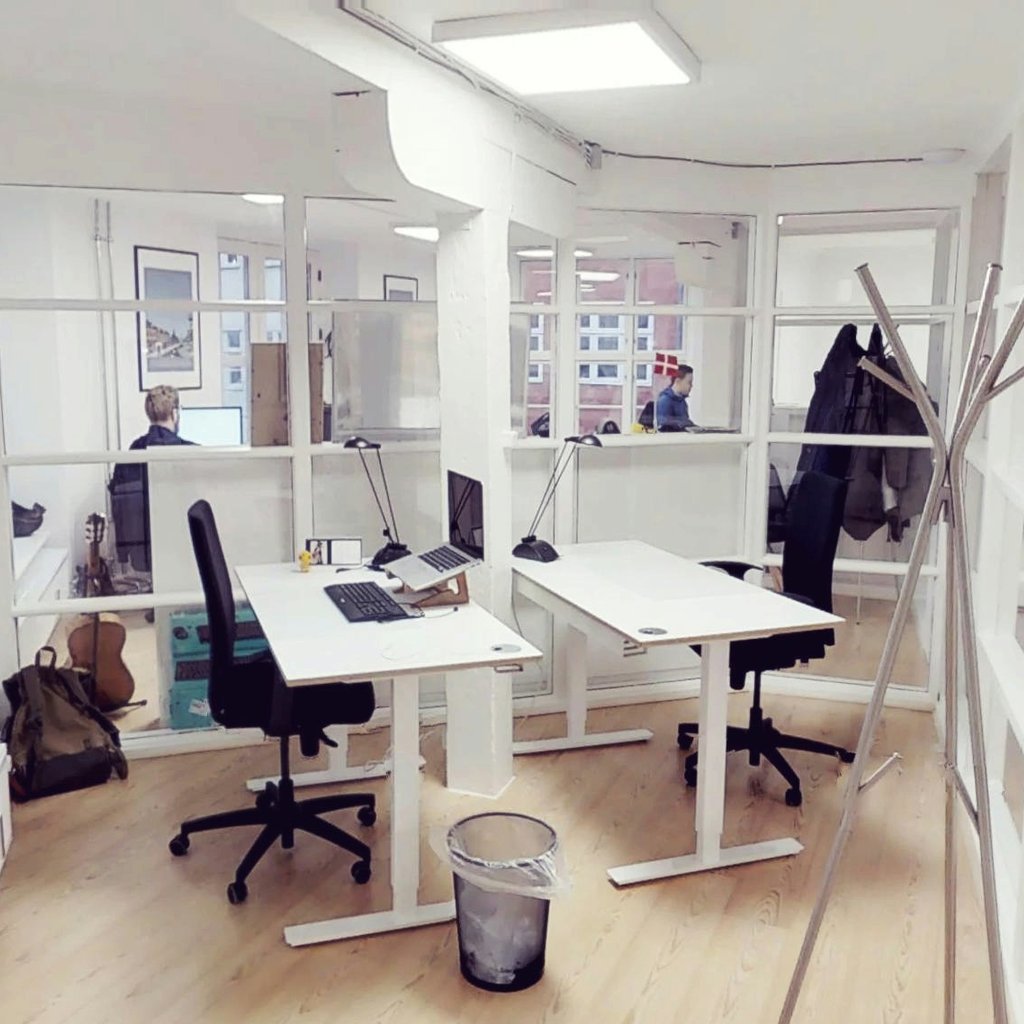 Kontoret står klar til indflytning og er møbleret med alt hvad du skal bruge: hæve sænkeborde, kontorstole, opbevaring, mødelokale, loungeområde, køkken og frokostlokale - alt det nødvendige for at få dagligedagen til at fungere.