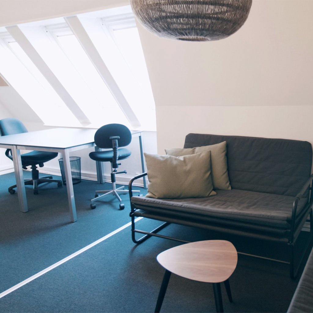 I får jeres eget kontor med plads til 4-5 personer. Kontoret er møbleret og klar til indflytning. Prisen er inklusiv drift og services.