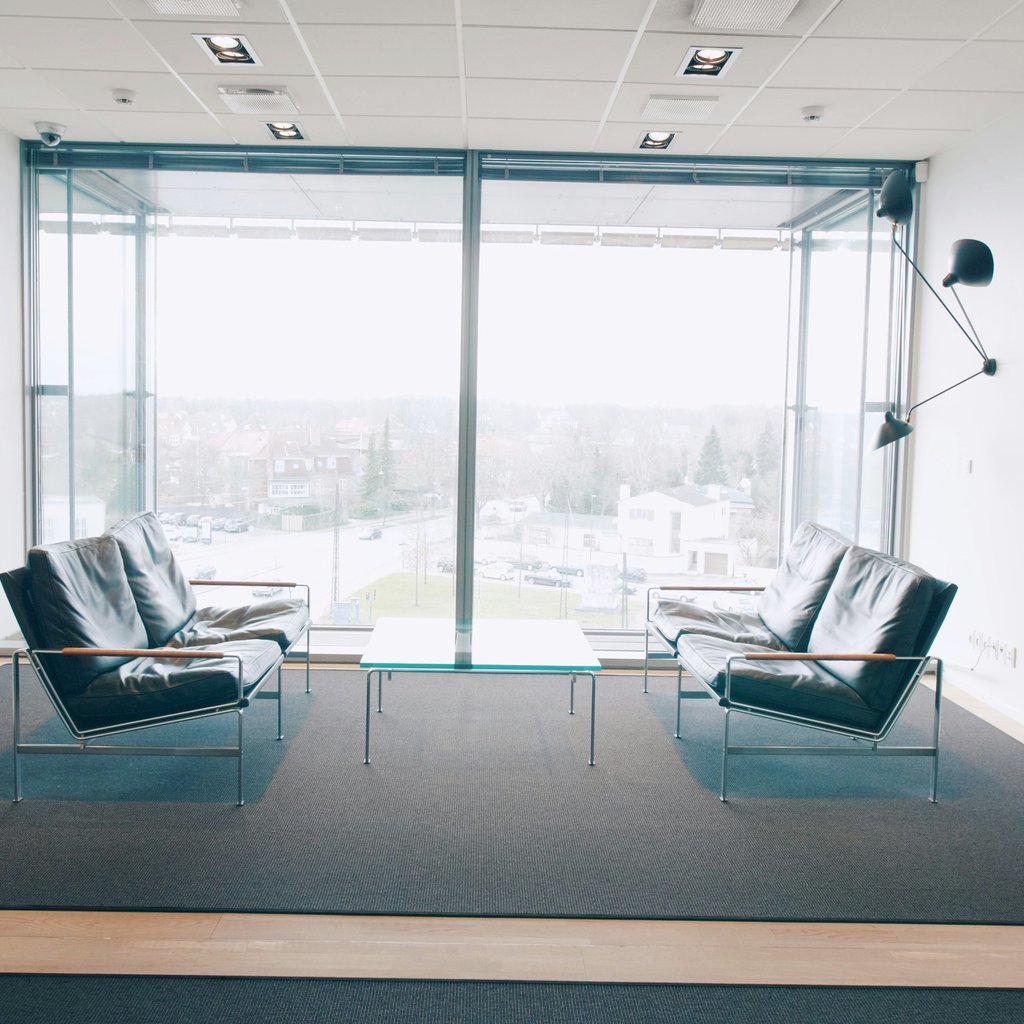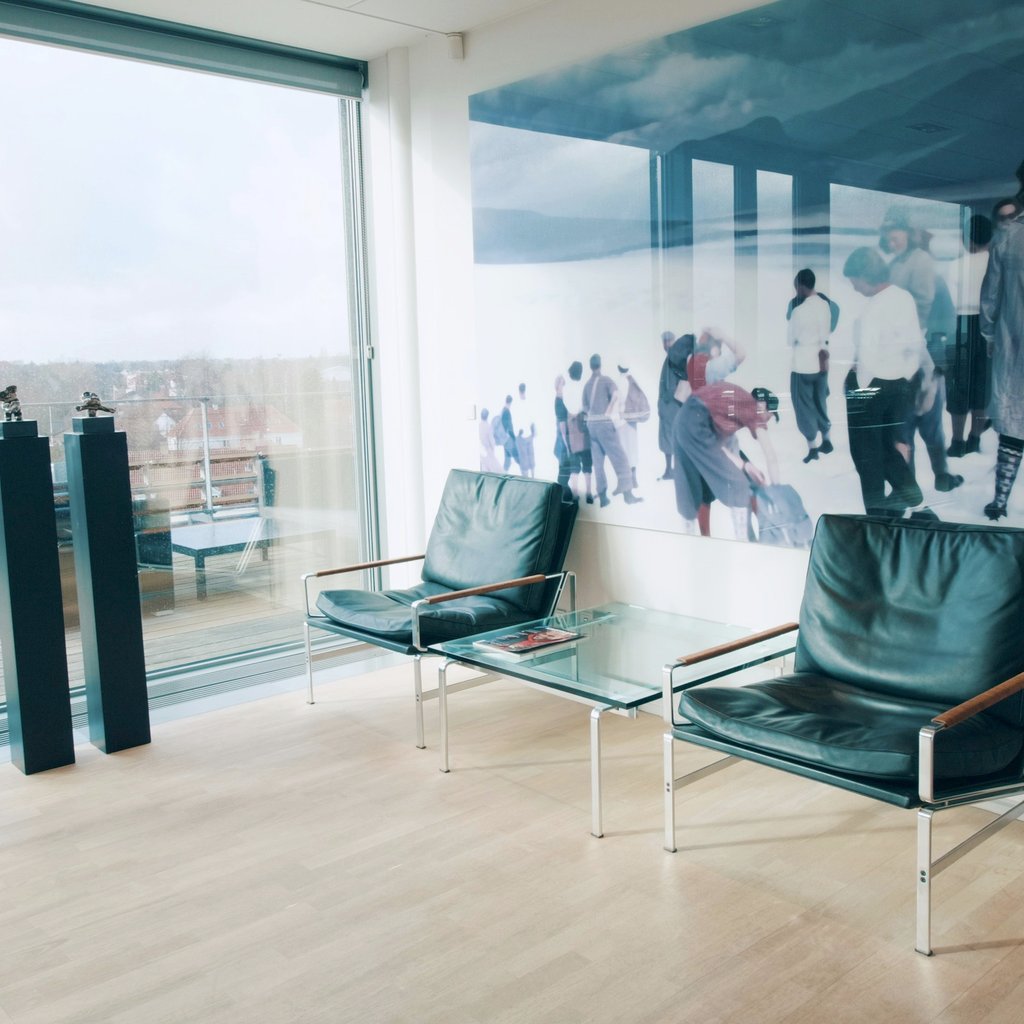 Kontoret er flot indrettet med designklassikere, kunst og en kærlighed for detaljen. Rundt på kontoret er der fællesområder med mulighed for at tage uformelle samtaler. Dine kunder og samarbejdspartnere vil blive mødt af en flot og imødekommende reception.