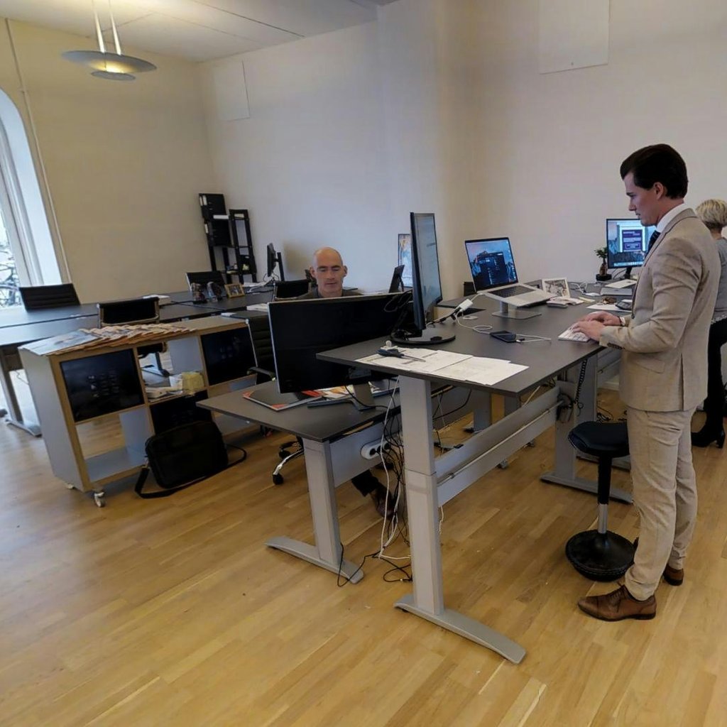 Du får dit eget møbleret kontor med 4 hæve/sænkeborde og stole.