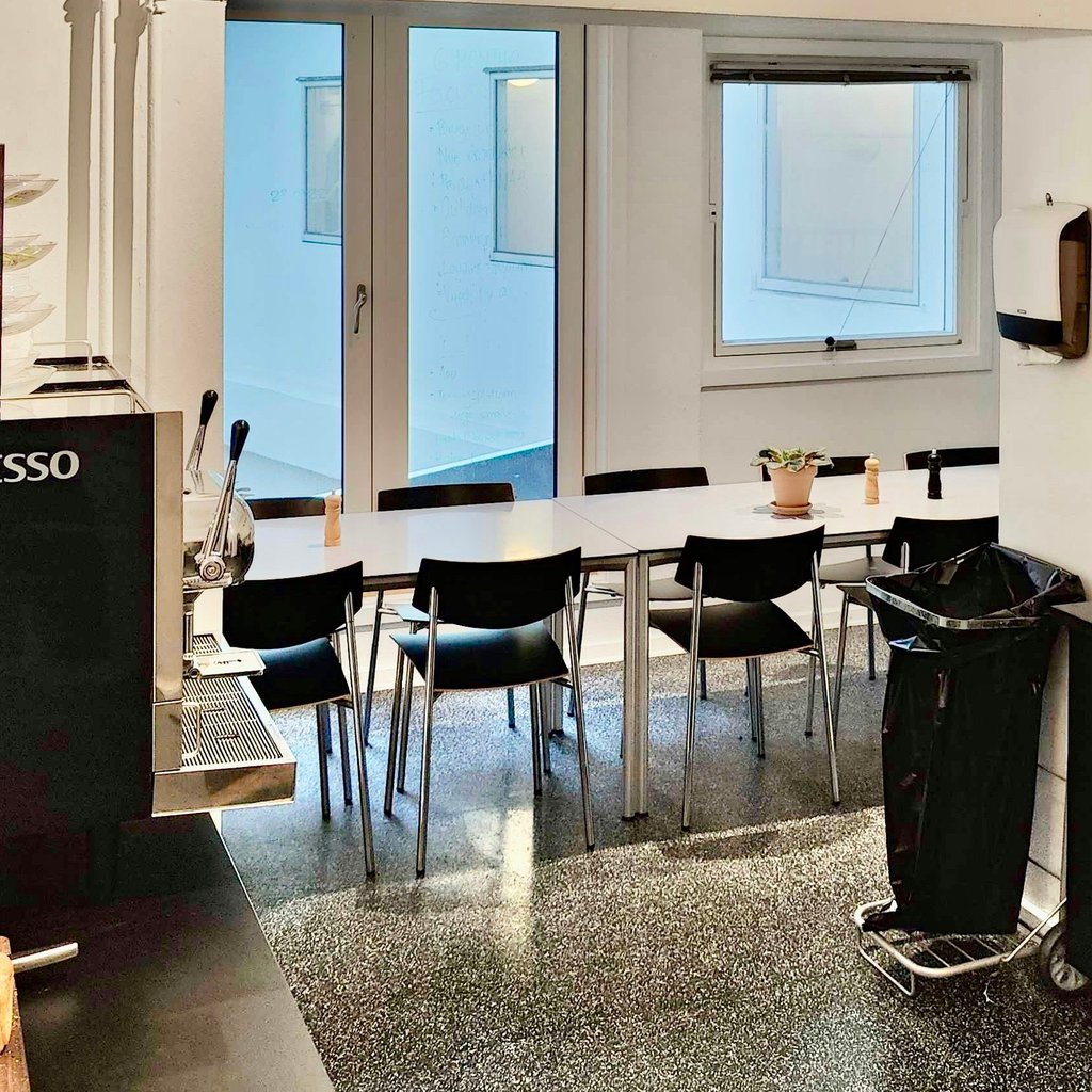 Her har du et dejlig mødested, hvor kaffen of frokosten kan nydes sammmen med kollegaerne.