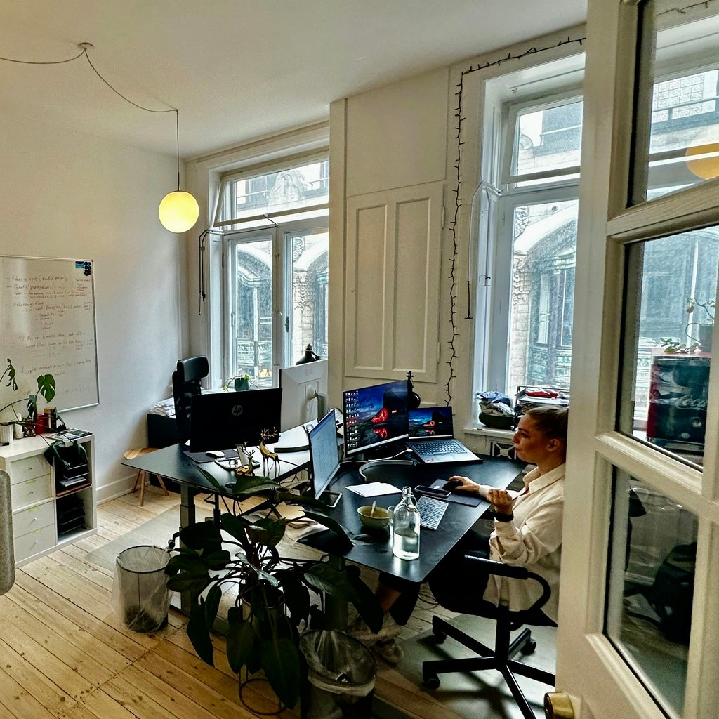 Du har kontor lige ved Rådhuspladsen, Kattesundet 4. Her kommer du til at ligge lige i hovedpulsåren af et fantastisk miljø med sortudvalg af caféer, spisesteder fra næsten alle steder på menu kortet :-) her kommer du til at ligge i et område med massere af liv. Er du virksomheden som har et ungt team, vil dette være stedet.