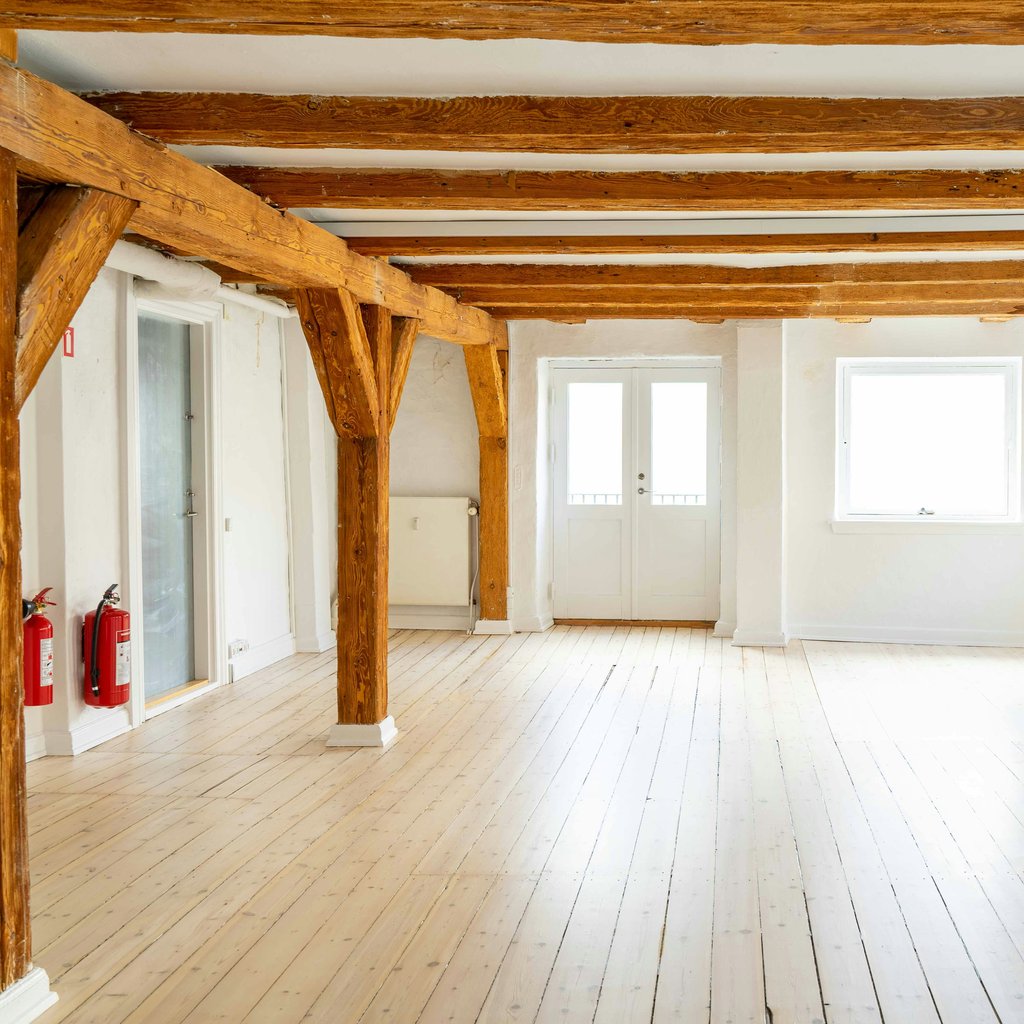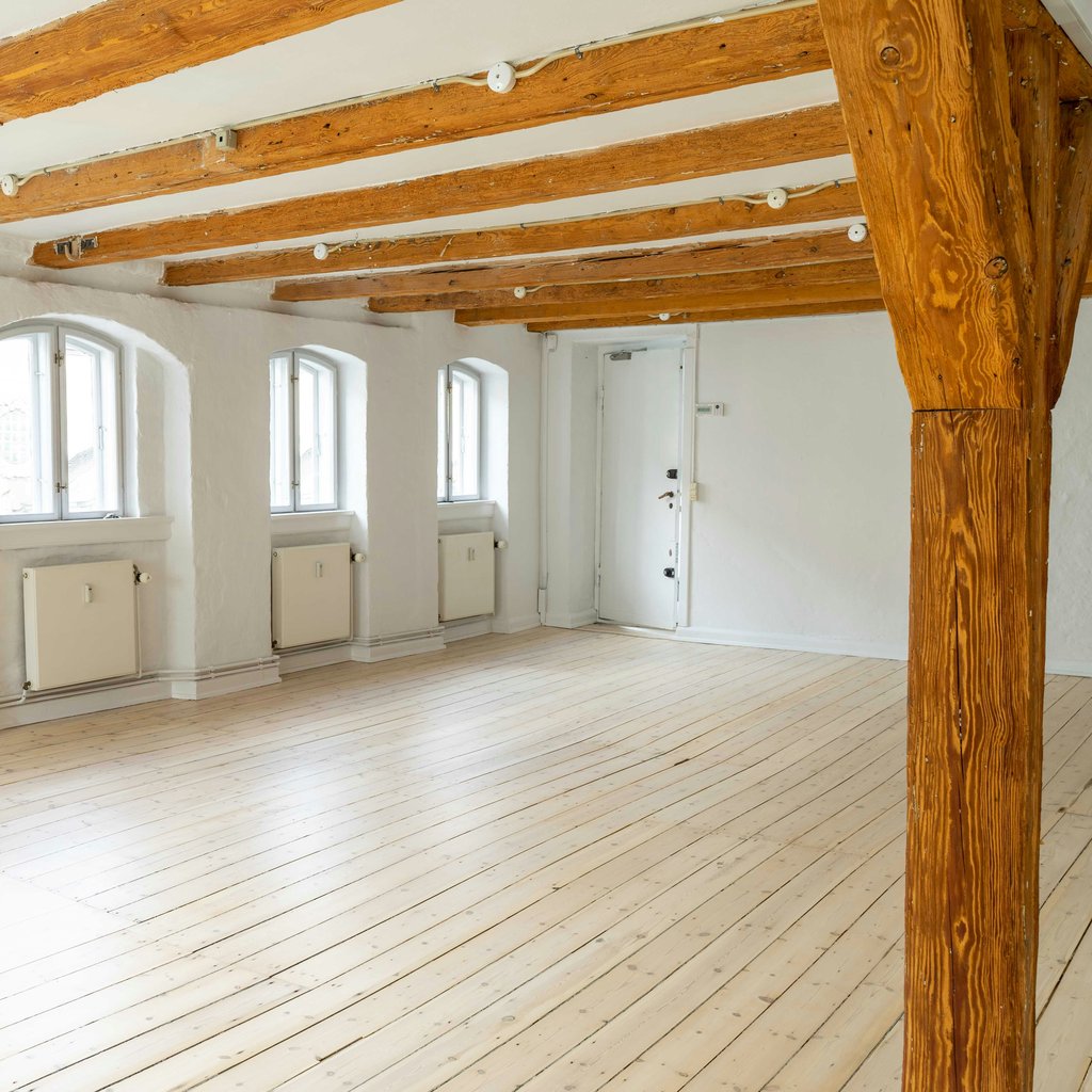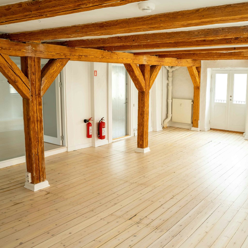 Det første du vil lægge mærke til, når du træder ind i kontoret på Kattesundet 4, er de flotte træbjælker der giver lokalet et fantastisk råt touch. Rummet er dejlig kvadratisk og har et skønt lysindfald, hvilket gør, at det er super let at indrette med enten bord-øer eller hæve/sænkeborde. Kontoret har sit eget mødelokale, der også bliver jeres, hvis I lejer jer ind.
