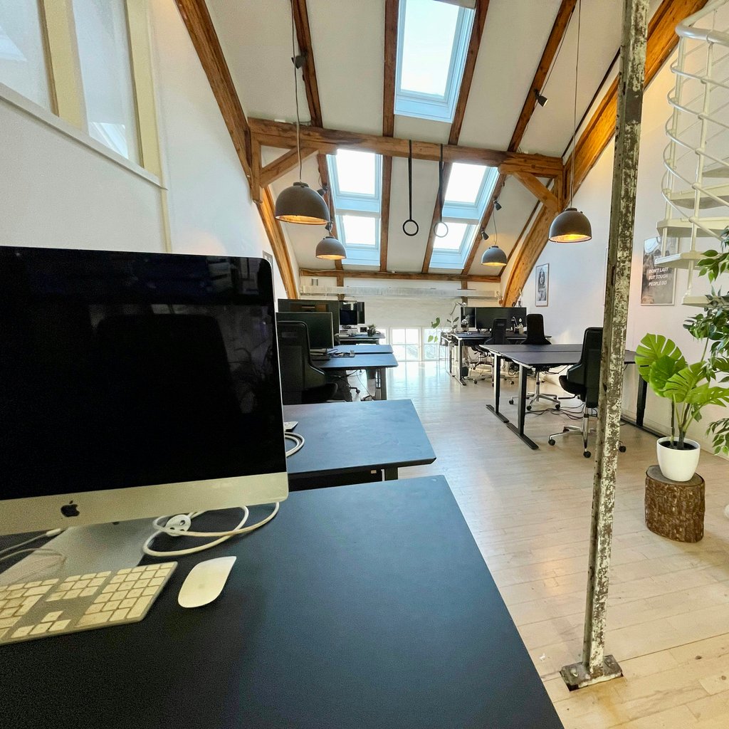 Vi tilbyder kontorpladser, hvor alt er inklusiv, hæve sænkebord,stol, Lounge/ sofa område, mødelokaler med skærme, tekøkken og hurtig Fibernet.
