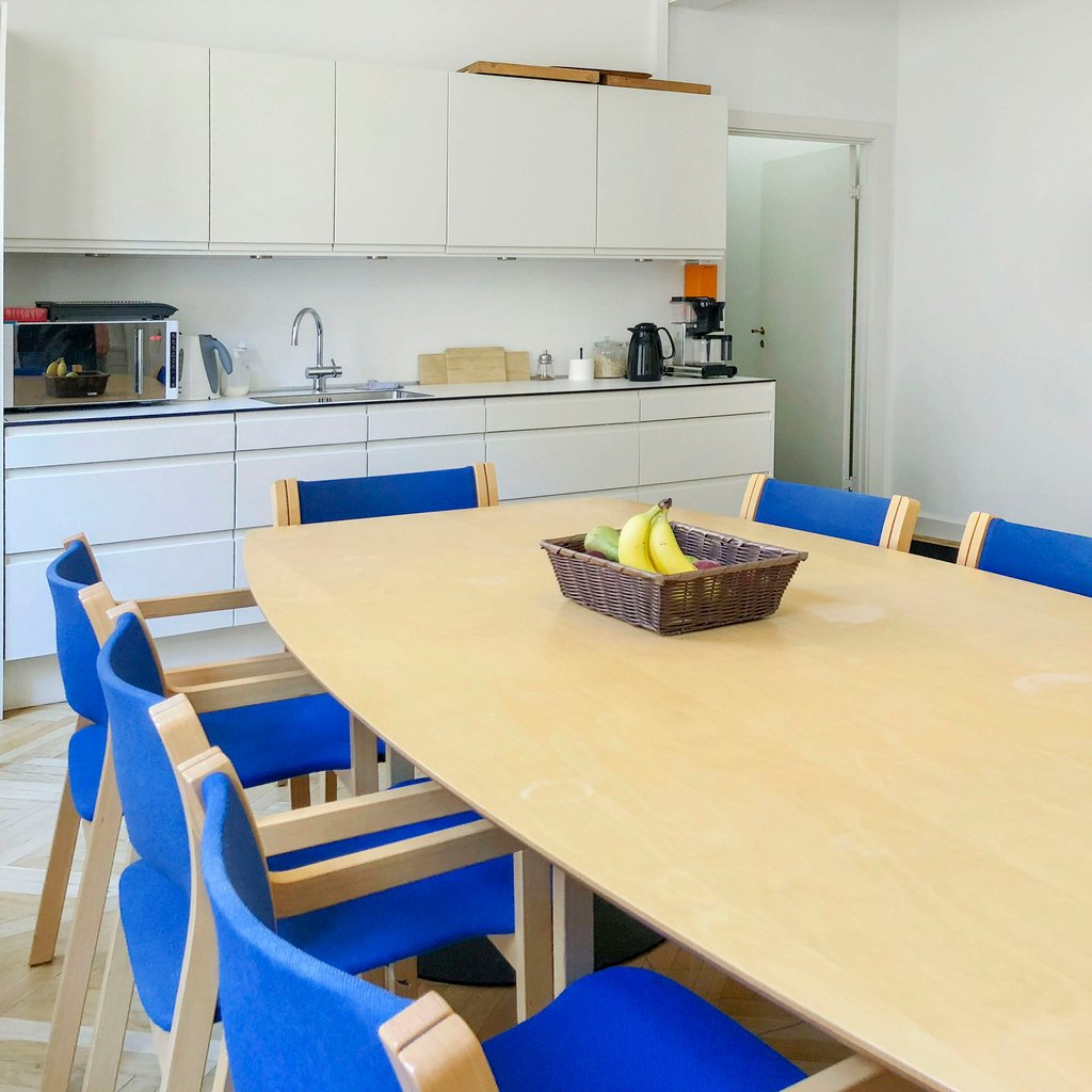 Køkkenet har alt hvad du skal bruge uanset om du tager madpakken med eller du laver frokost på kontoret. I får jeres egen hylde i køleskabet hvor i kan opbevare frokost og drikkevarer. Når alle lokalerne er udlejet, vil det være muligt at etablere en frokostordning, hvis der er stemning for det.