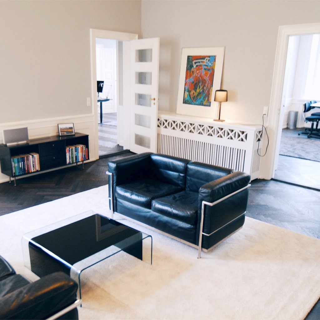 Fra man træder ind i opgangen på Kronprinsessegade, hænger et ord i luften - wow. Her er forsøgt at skabe et virkelig skarpt førstehåndsindtryk. Faktisk er de lykkedes med det i overflod. De lyse lokaler med udsigt over Kongens Have og det mørke sildebensparket.