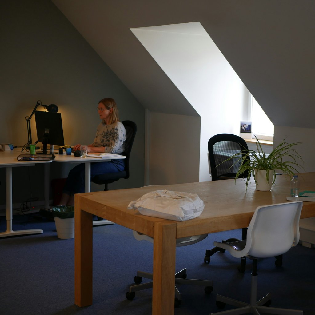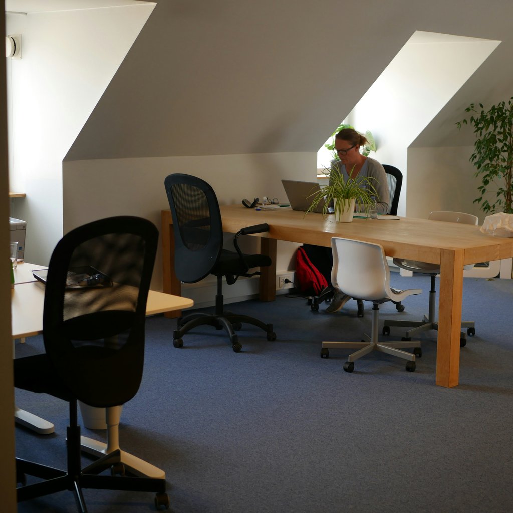 Der er ikke så meget pjat, når du træder ind hos Lyngby Office Hub på Hovedgade 63. Her finder du et lille hyggeligt kontorfællesskab, hvor der er faste pladser med bord og stole der allerede står klar. Derudover finder du et lukket kontor på omkring 16 m2. Her er der ingen møbler (endnu), men det gør bare, at du kan få lov til at skabe dit eget bedste arbejds univers.
