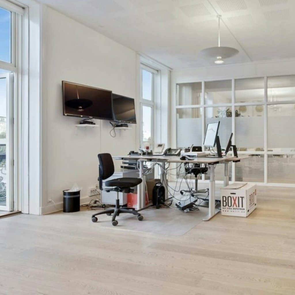 Med det her kontor får I 434 kvadratmetre at boltre jer på. Hver måned koster det 2250 kroner per kvadratmeter. Den månedlige drift og skatter udgør 0 og, vand og varme bliver 120 kroner.