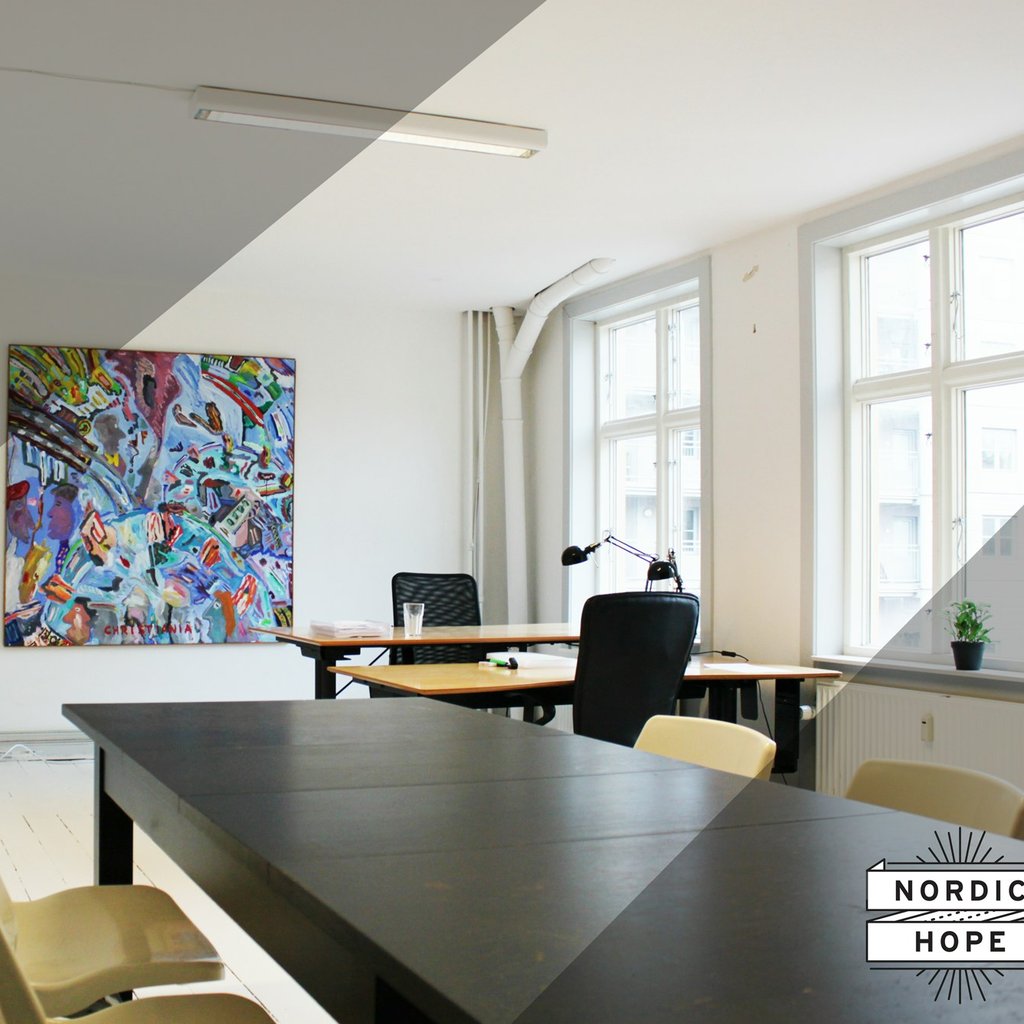 Med en gennemsnitsalder på 25 år er Nordic Hope et af de yngre kontorfællesskaber i København og huser derfor primært startups. Du kommer bl.a. til sidde sammen med virksomheden klinikker.dk og det kreative bureau BlackLab. Hvis du er på udkig efter et ungt energisk arbejdsmiljø med fokus på vidensdeling og hygge, er det her helt sikkert stedet for dig 🙌