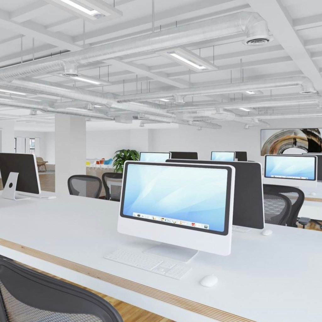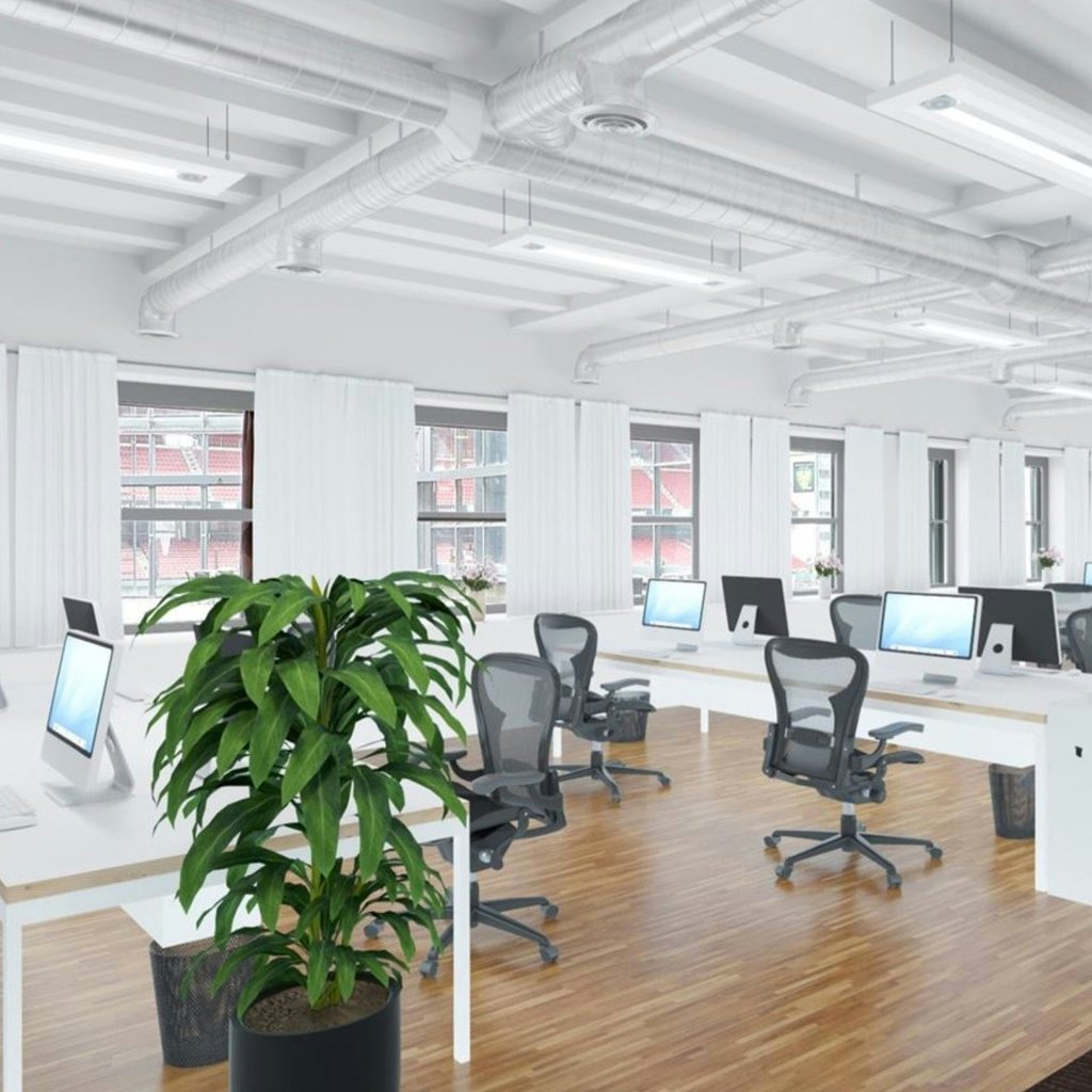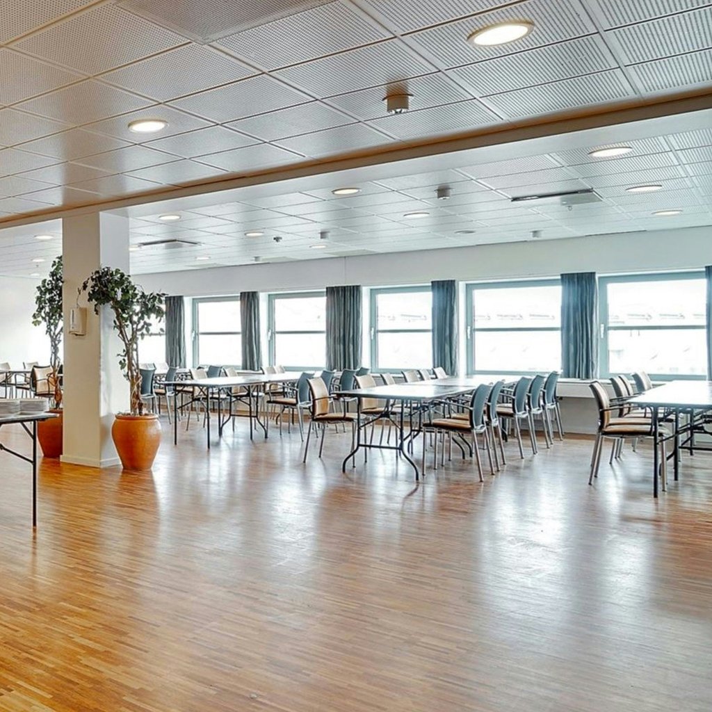 Med det her kontor får I 585 kvadratmetre at boltre jer på. Hver måned koster det 1320 kroner per kvadratmeter, den månedlige drift og skatter koster 444 og vand og varme koster 126.