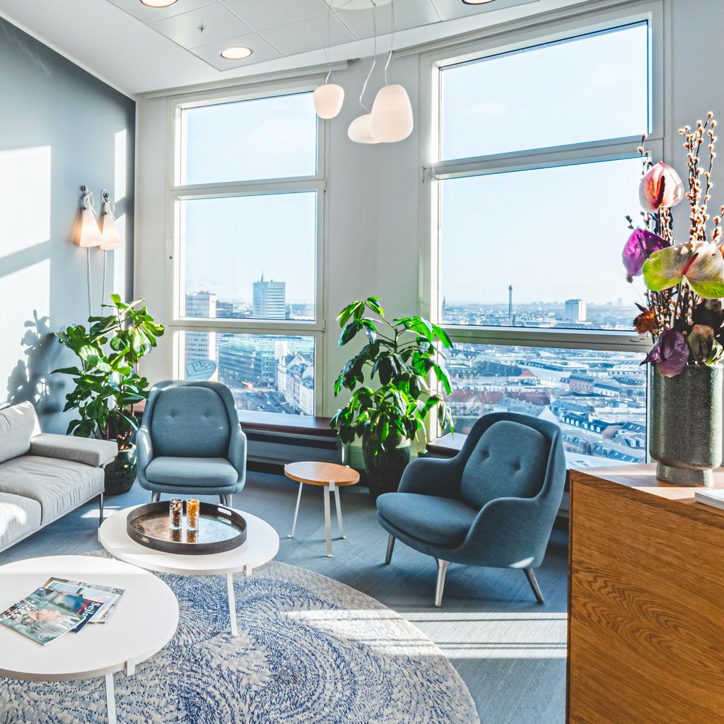 Når du træder ind af døren lægger du hurtigt mærke til, at det her er noget udover det sædvanlige. Kontoret har en fantastisk indretning og en udsigt der er svær at slå. Personalet i receptionen hjælper med, at få dagligdagen til at fungere optimalt for dig.”