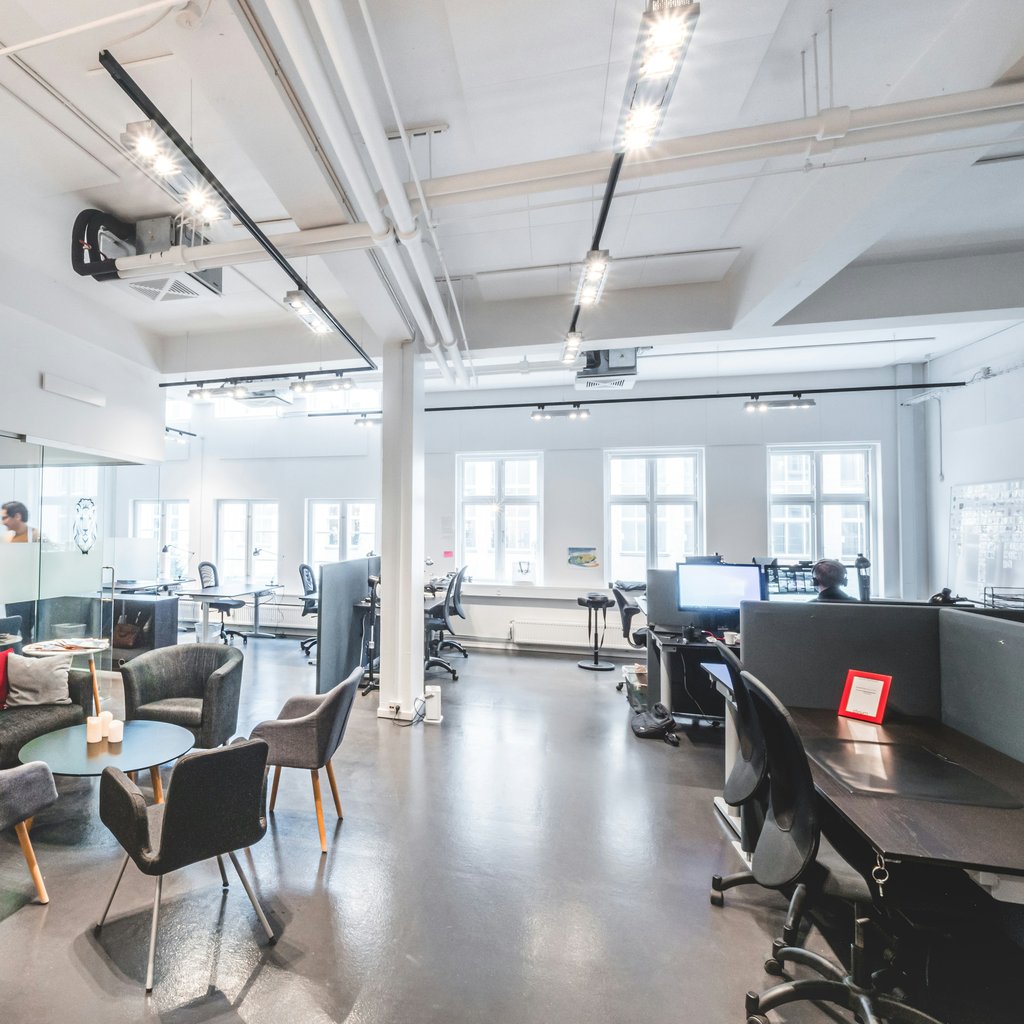 Store, lyse og åbne lokaler er det første du bliver mødt af, når du træder ind på Pilestræde 10. Herefter vil du opdage kontorfællesskabet moderne stilrene møblering, og den gode akustik som fuldender rummet. Det gør, at du ikke skal tænke på indretning, og i stedet bare kan fokusere på din virksomhed, når du træder ind på kontoret.