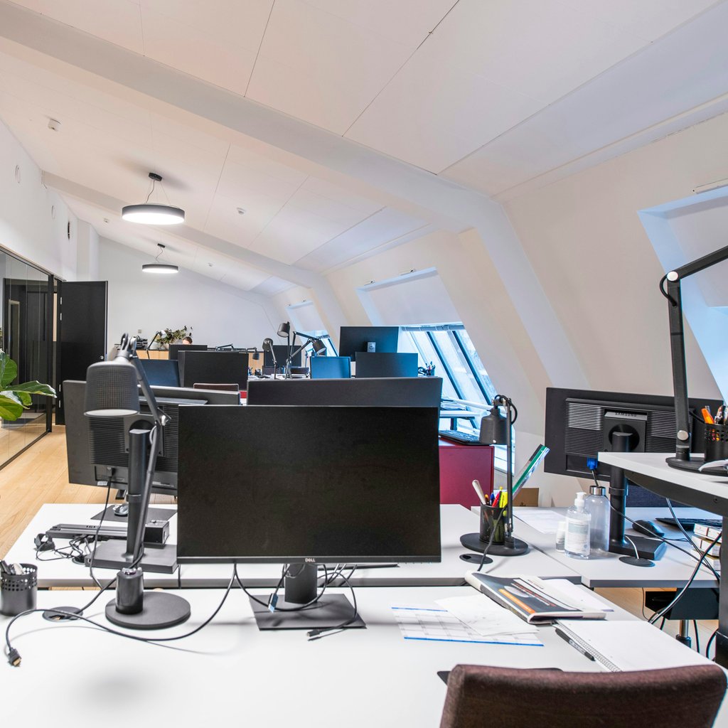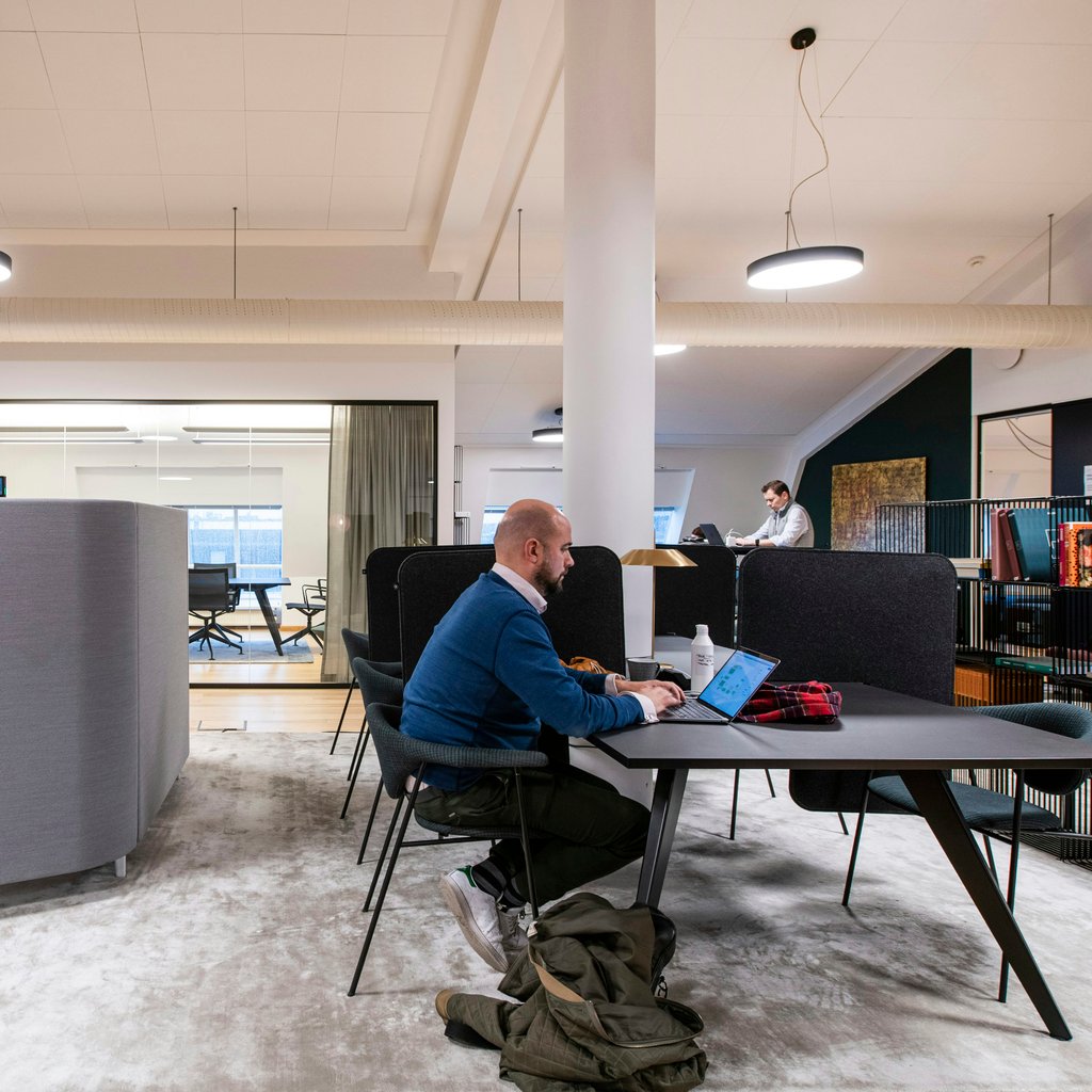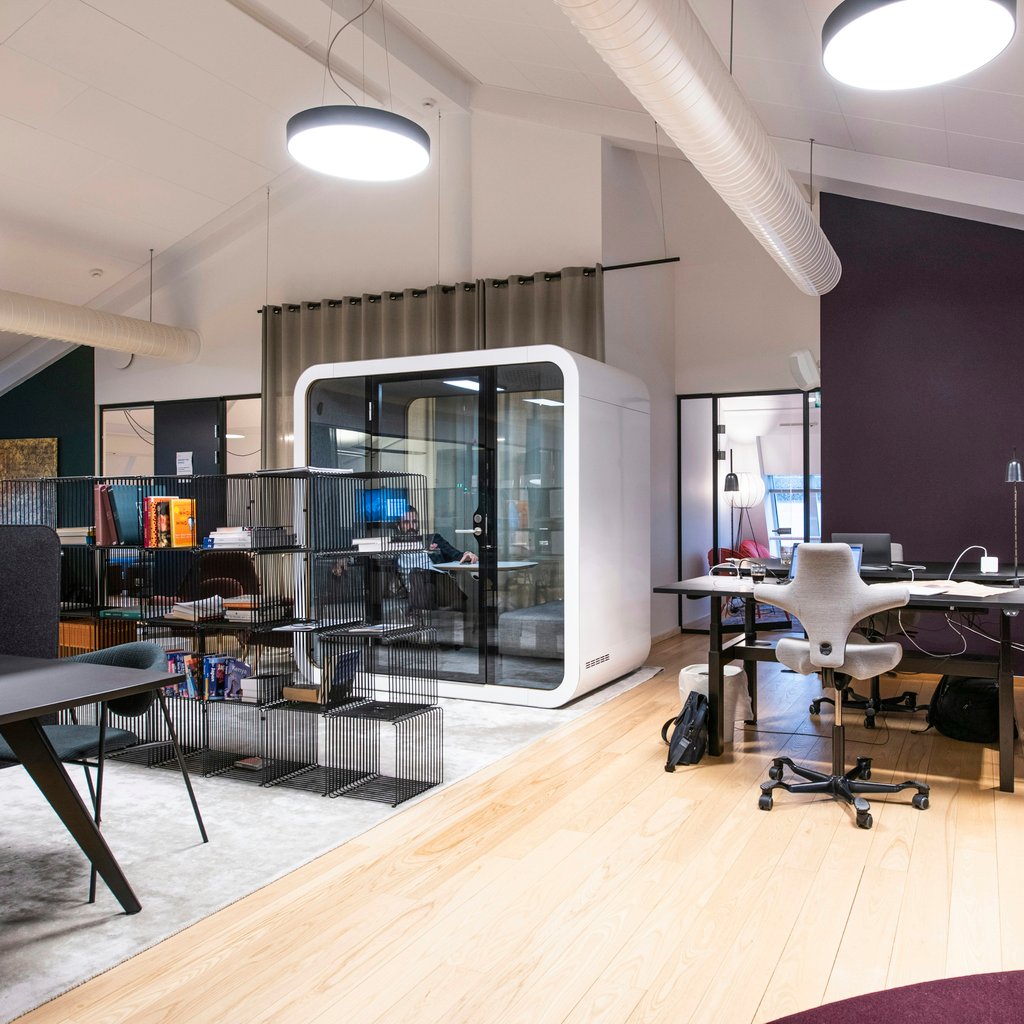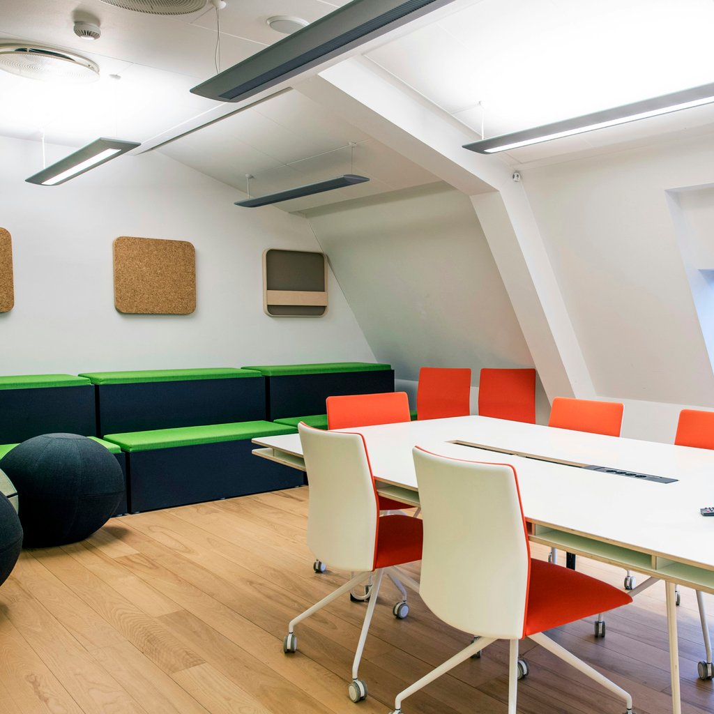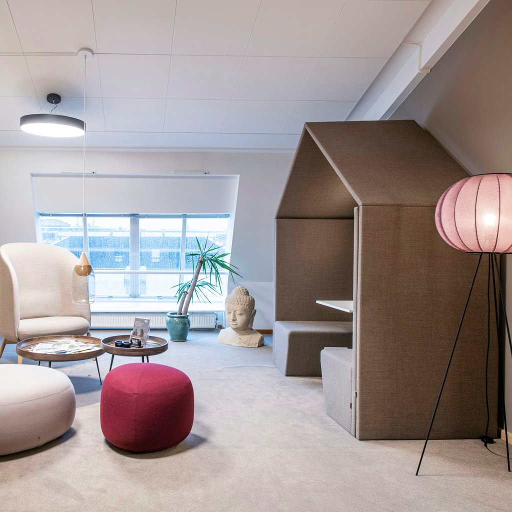 Kontoret er indrettet ud fra designtankegangen Acitivity Based Workspace - det betyder, at specifikke områder har specifikke funktioner. Der er f.eks. områder designet til at tale i telefon, miljøer til uformelle møder og lukkede mødelokaler til præsentationer. Perfekt til dig, som ikke nødvendigvis bruger 100% af dagen foran en computer.