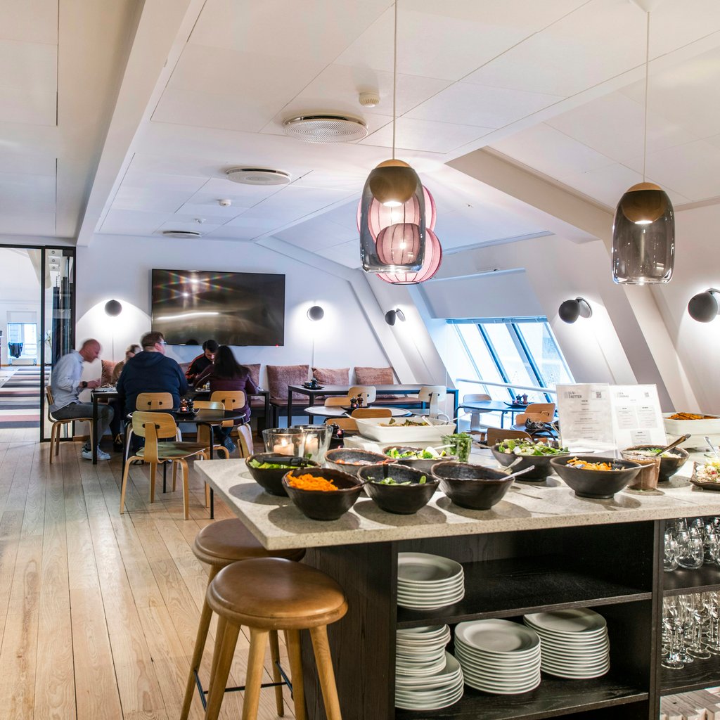 Du kan blive en del af kontorets frokostordning eller selv tage din frokost med - det er op til dig. Der er tradition for, at man spiser frokost sammen og om fredagen er der ofte fredagsbar, for dem der har lyst, hvor man kan få et glas god vin via kontorets vinomat (den er ret smart).