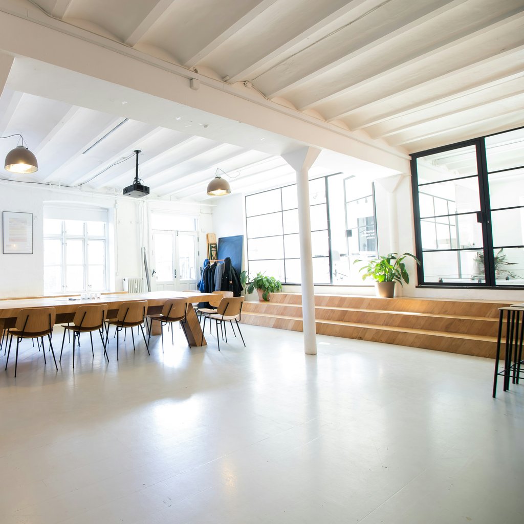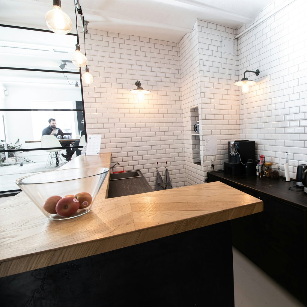 Som lejer får du adgang til et stort fælles køkken og du kan blive en del af kontorets frokostordning hvis du ønsker det. Hvis du er mere til at tage frokosten med selv, så er der køleskab som du kan benytte. Desuden er der tilknyttet mødelokale, som du booker efter behov.
