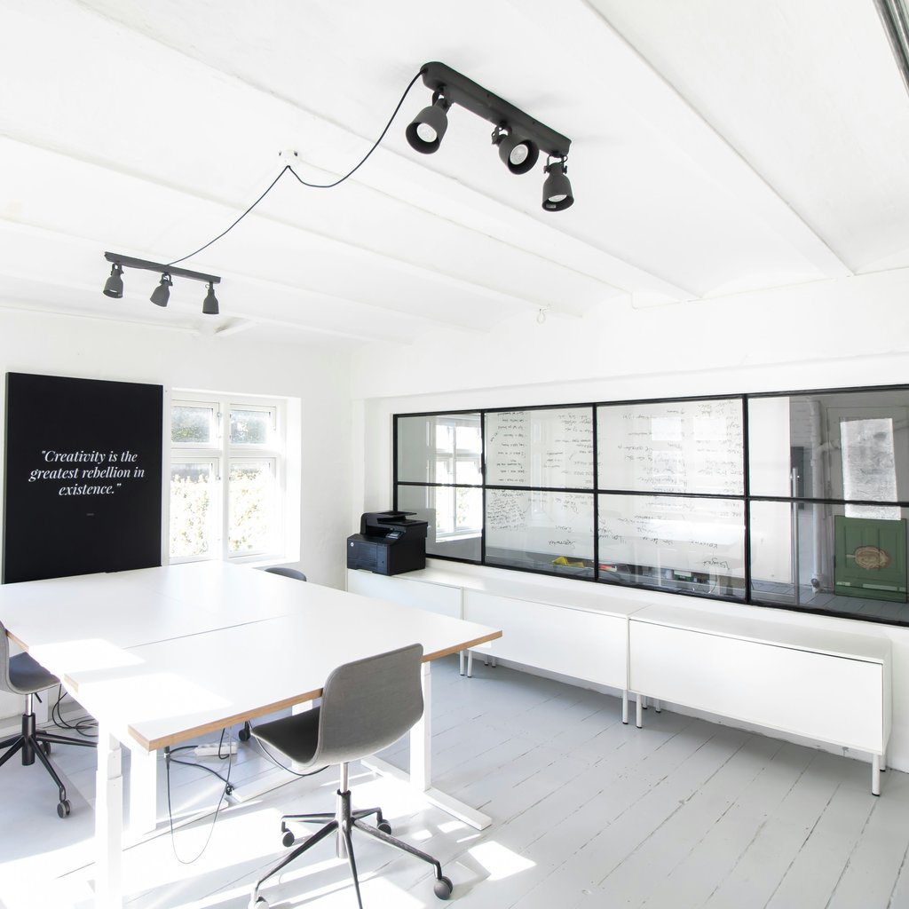 I får jeres eget kontor som er møbleret til 3 eller 4 personer med hæve sænkebord, kontorstole og opbevaring. Prisen er inklusiv drift og services.