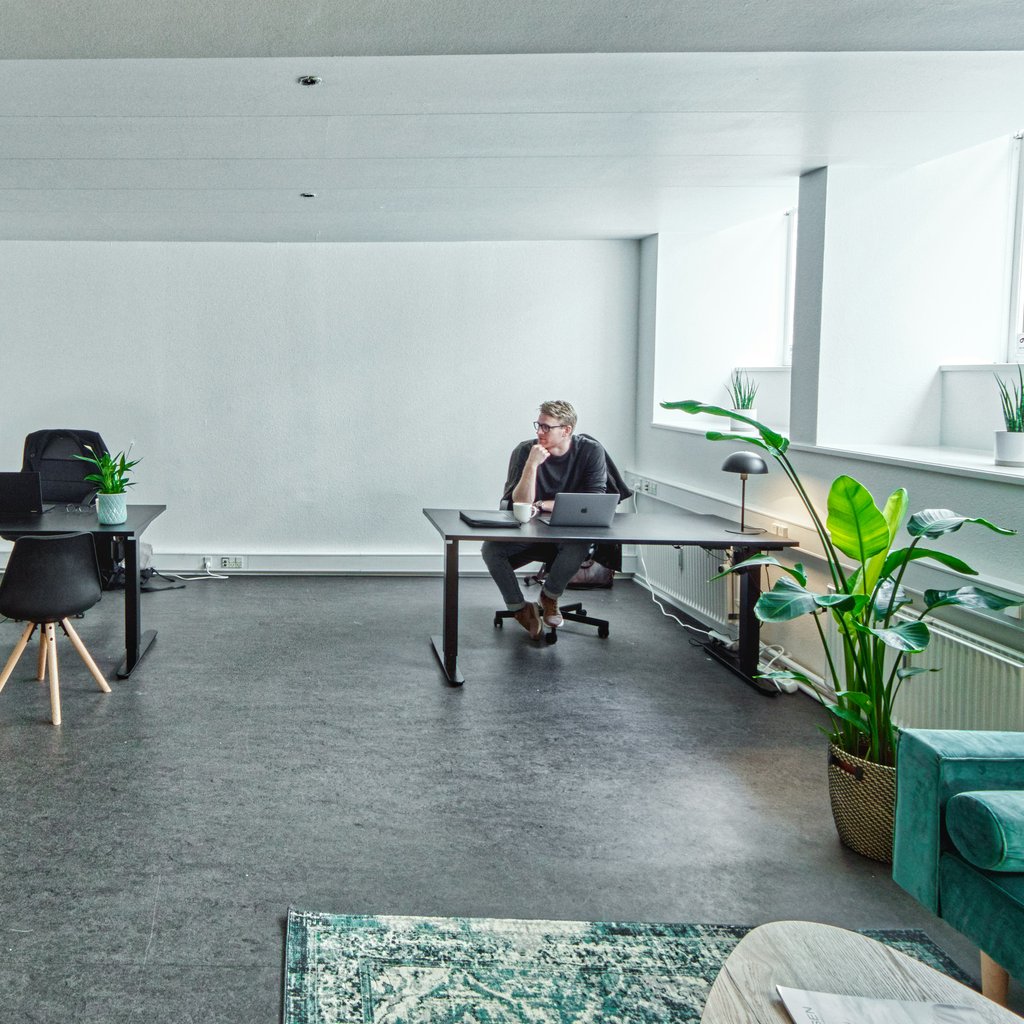 Du kommer slentrende ned af Store Kongensgade og stopper ved nr. 68. Du træder ind i bygningen og bevæger dig op til kontoret. Du bliver mødt af et ægte plug´n work kontor. Hæve sænkeborde og stole står klar til dig, og du tænker, wow. Lokalet er top lækkert, og du kan nærmest allerede mærke den rare stemning der er over stedet. Her kan du virkelig få lavet noget arbejde.