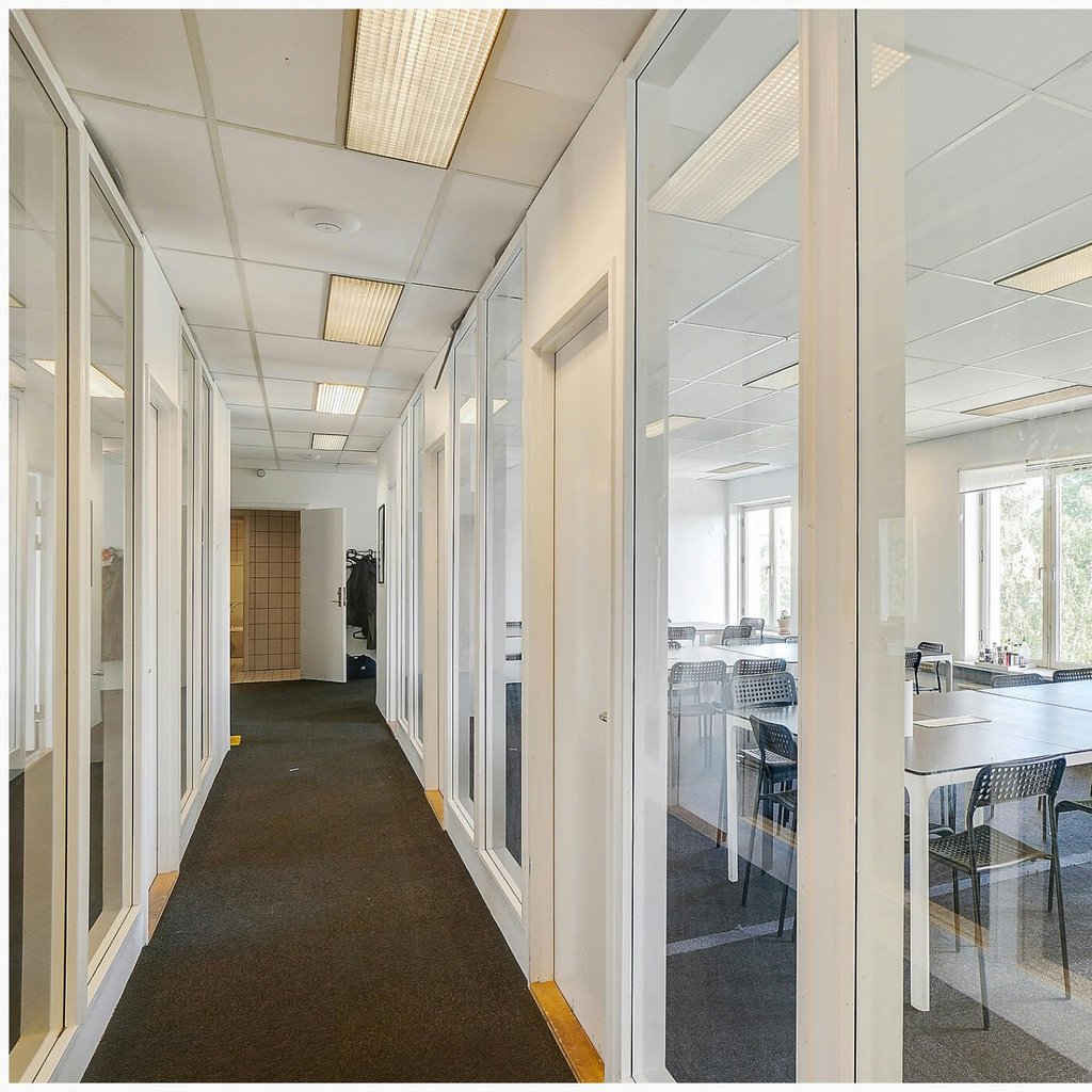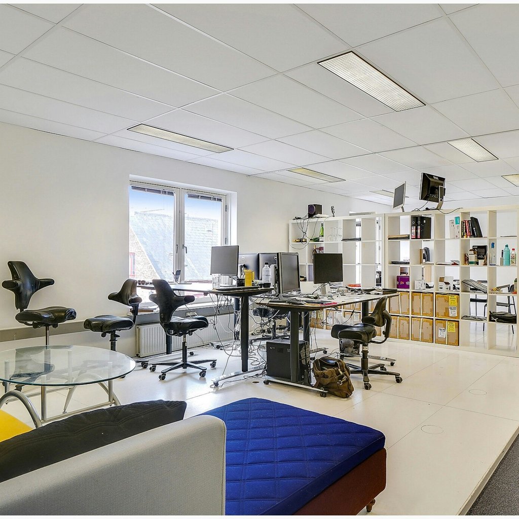Med det her kontor får I 644 kvadratmetre at boltre jer på. Hver måned koster det 978 kroner per kvadratmeter, den månedlige drift og skatter koster 216.