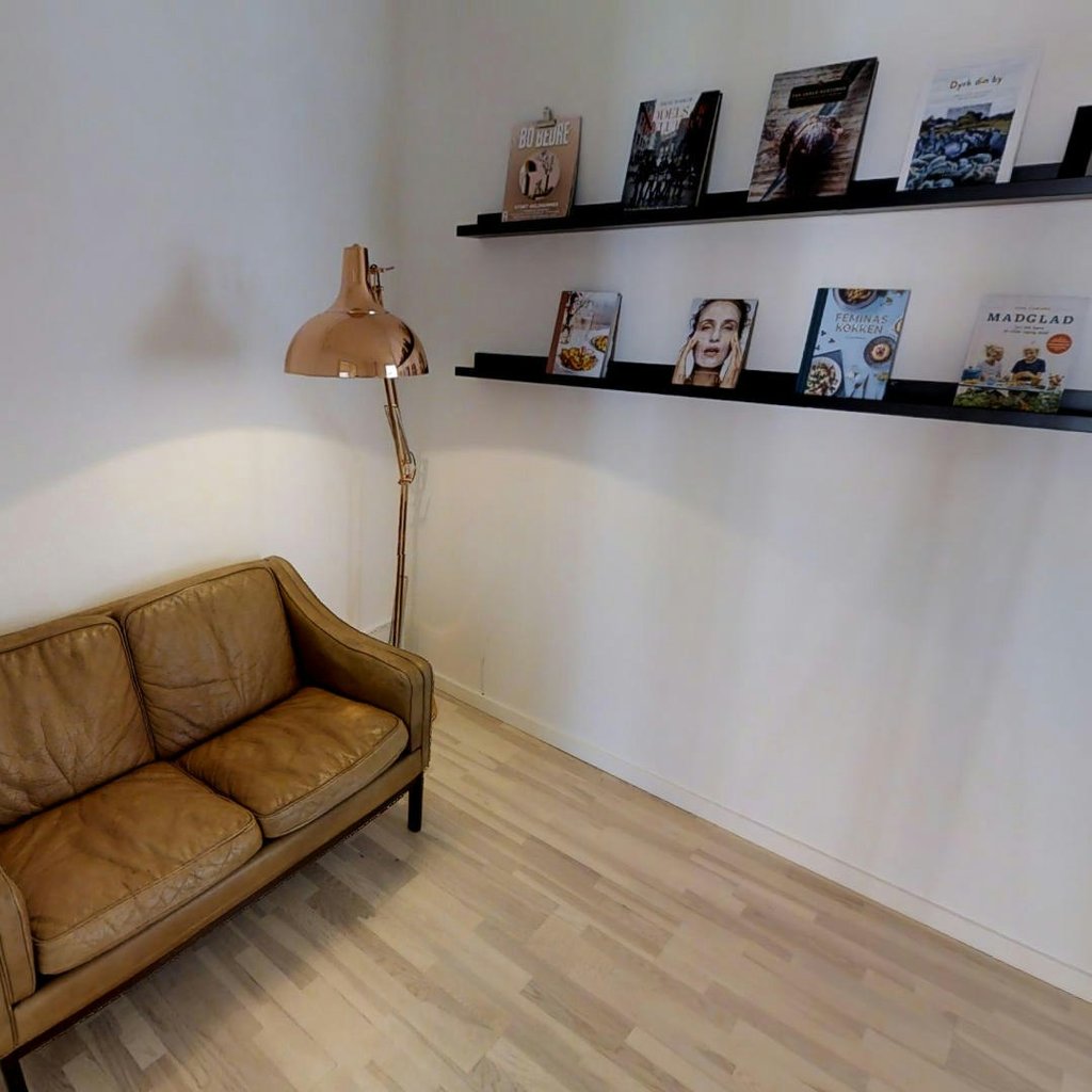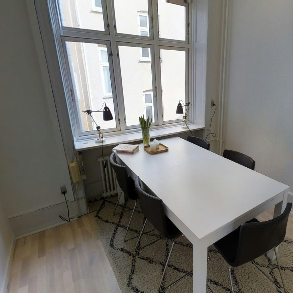 Mødelokalet har plads til fem personer og kan frit afbenyttes af lejerne.