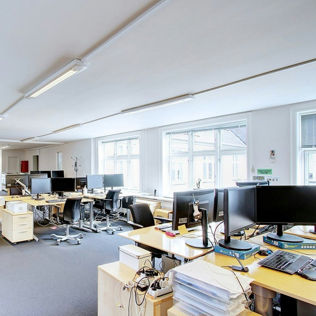 Med det her kontor får I 442 kvadratmetre at boltre jer på. Hver måned koster det 1770 kroner per kvadratmeter. Den månedlige drift og skatter udgør 102 og, vand og varme bliver 98 kroner.